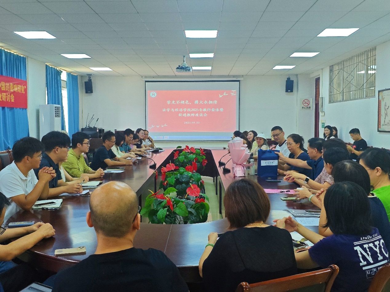 于41401教室举行2025年教师荣休暨新进教师座谈会,学院领导班子成员、荣休荣退教师、新进教师以及师生代表参会。