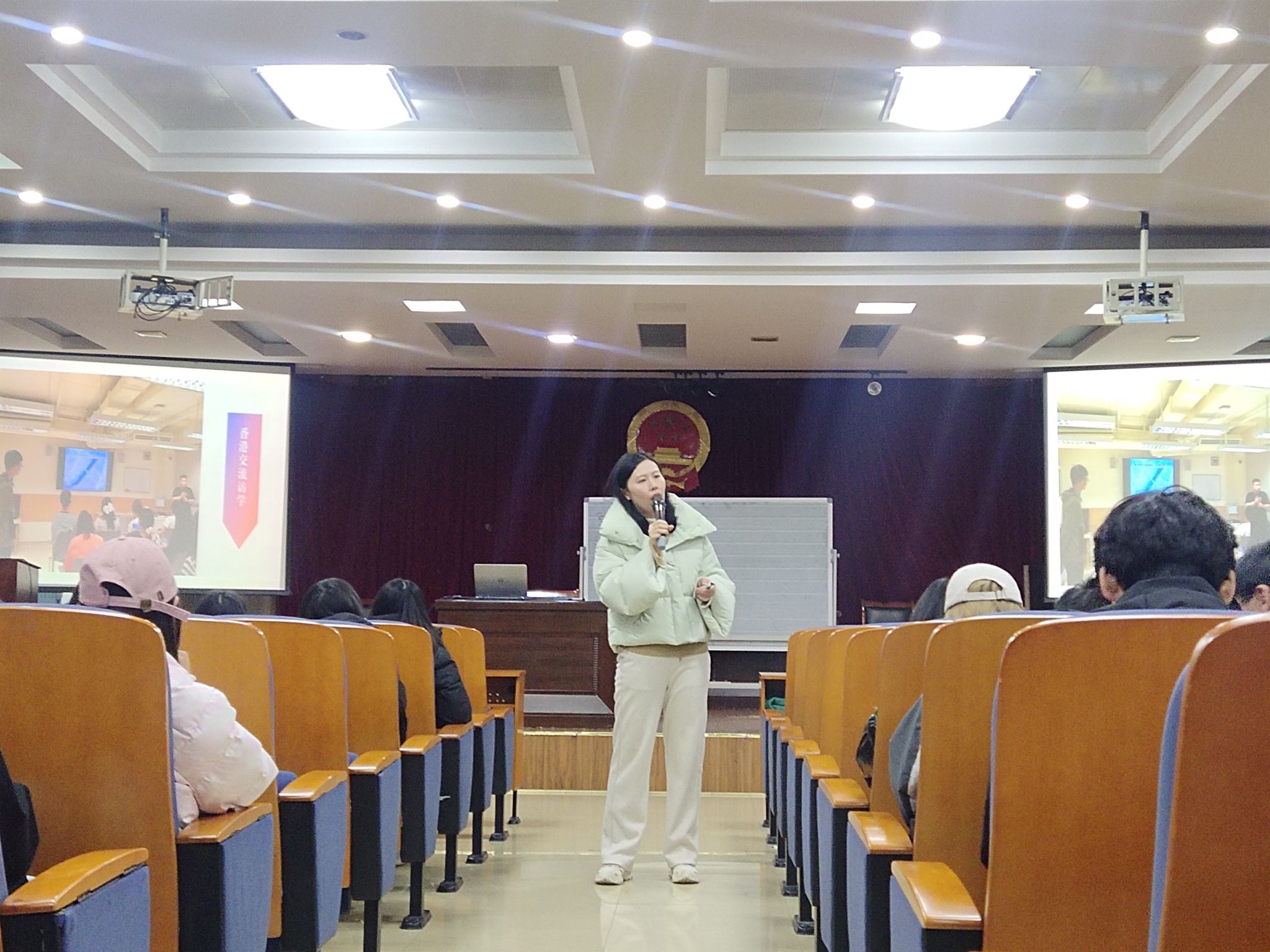武科大网讯(通讯员史书娴、冯馨悦、李嘉琪)为提高人才培养质量,做好法学大类招生模式下学生专业分流工作,增进学生对社会工作专业的了解,帮助同学们激发信心、做好专业学习规划,学院于11月30日晚18:30在教四楼模拟法庭召开2023年法学类专业分流之社会工作宣讲会,学院科研副院长李莉出席活动并讲话,社会工作系系主任肖竹、教师宁雯雯,学院2023级本科生辅导员易阳帆、社会工作专业优秀学生代表张小英及全体2023级法学类专业本科生参加活动。活动由社会工作系系主任肖竹主持。