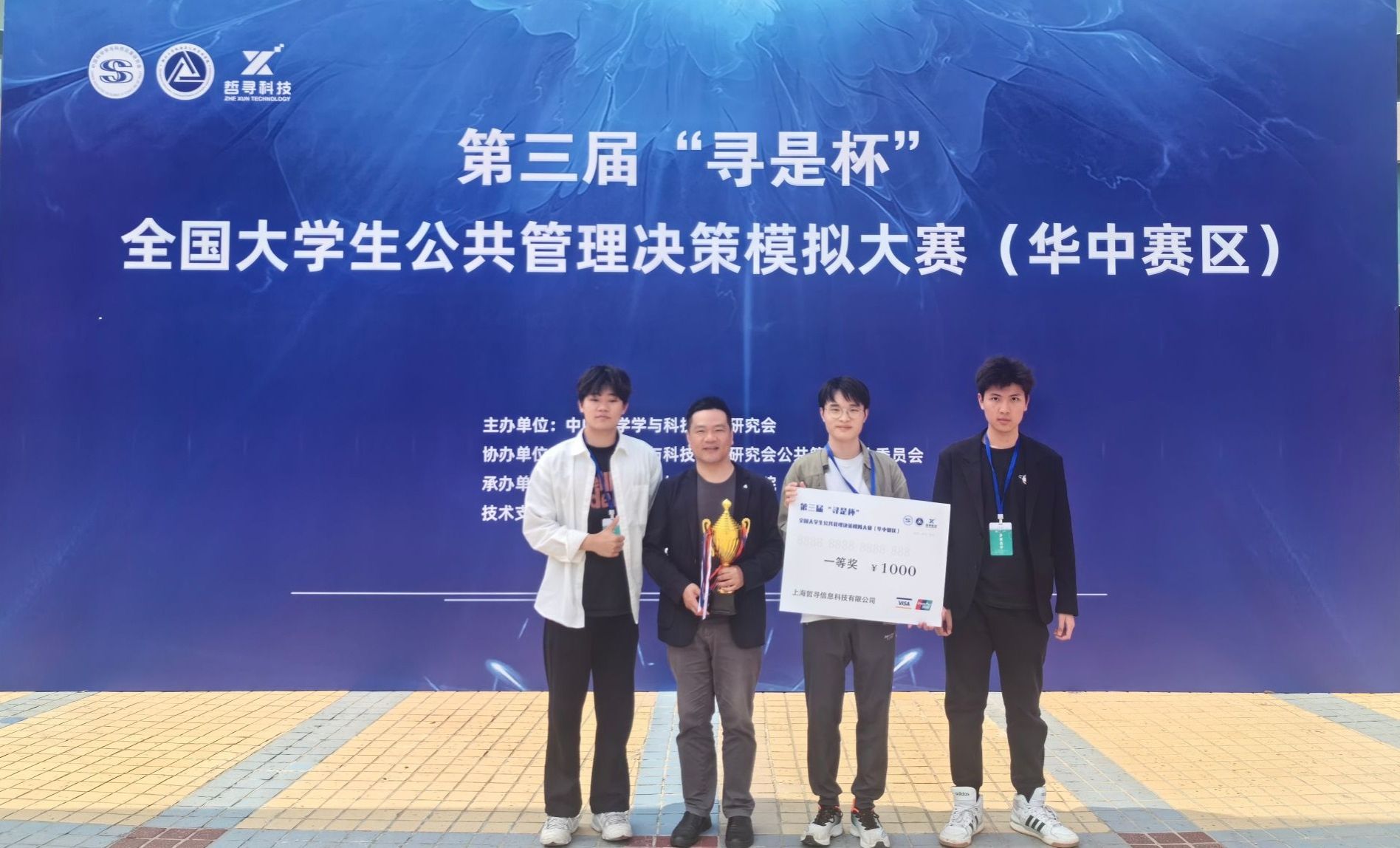 行政管理专业3位本科生组成的团队与华中科技大学、湖南大学、中南大学、郑州大学、武汉理工大学等高水平队伍同台竞技,最终以优异成绩荣获一等奖。行政管理系教师王哲、闫明明荣获“优秀指导教师”称号。