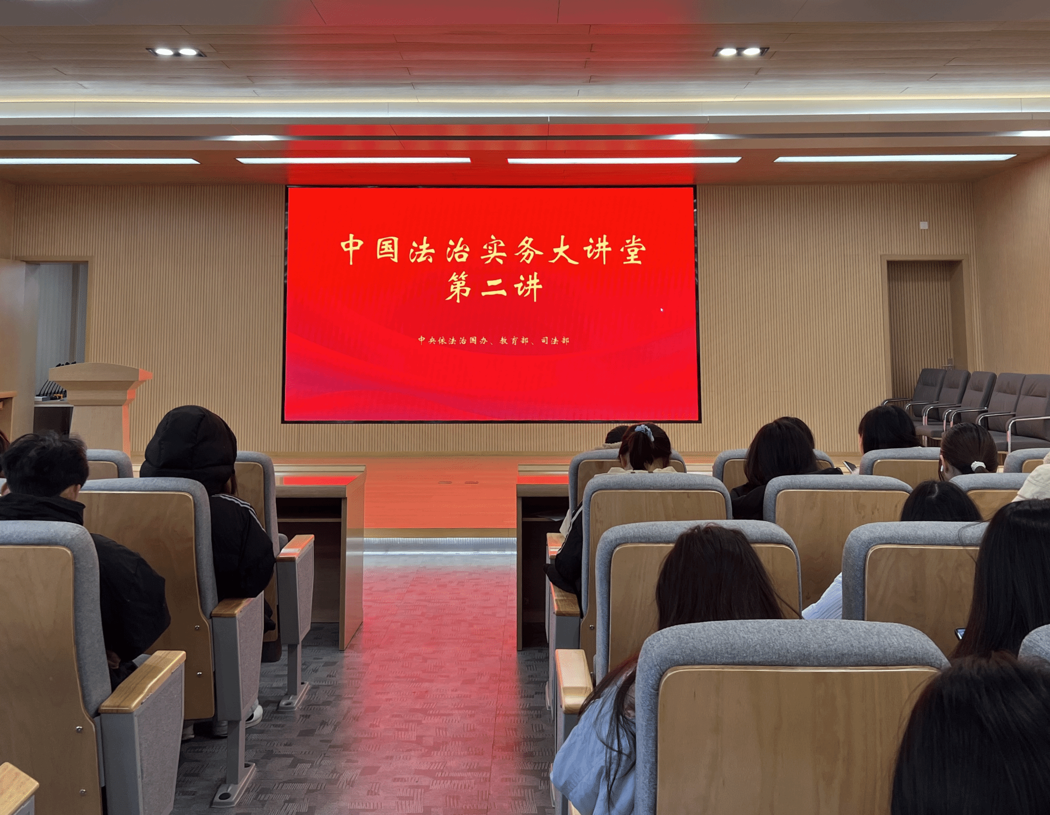 在教四楼模拟法庭开展中国法治实务大讲堂第二讲。司机会所