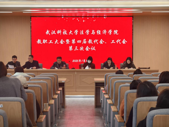 在教四3楼学术报告厅举行第四届教代会暨工代会第三次会议,学院领导班子及全体教职工参加会议,会议由党委副书记彭晓峰主持。