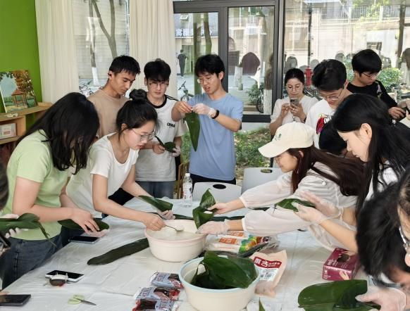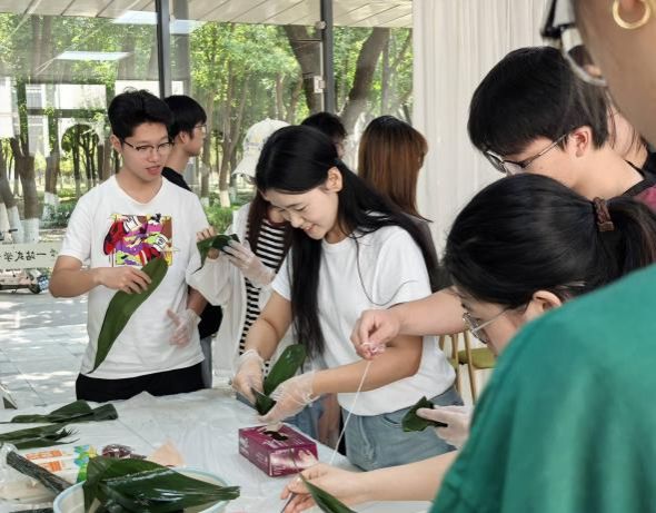 活动当天,师生们早早来到“一站式”学生社区,热火朝天地布置活动场地,粽叶、糯米、红枣、豆沙等食材摆放在长桌上,空气中弥漫着淡淡的清香,让人不由期待起即将开始的包粽子体验。