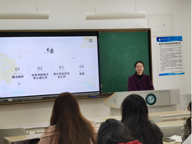 相较于郑继伟的“故事会”风格,陈佳霖的分享更像是一堂干货满满的“工具课”。她向同学们清晰展示了青少年社会工作的特点以及理论依据,让同学们了解作为一名社会工作者可能在青少年社会工作中面临哪些困境与挑战,通过分享青少年参与社区治理的案例,让同学们更加清晰地看到青少年社会工作实践的细节,细致地向同学们展示了在服务实施的过程中需要考虑到的各种因素,使同学们对于社会工作实践有了更加深刻地理解。“纸上得来终觉浅”,实践时总会遇到各类突发问题,只有多践行多积累,才能渐入佳境。