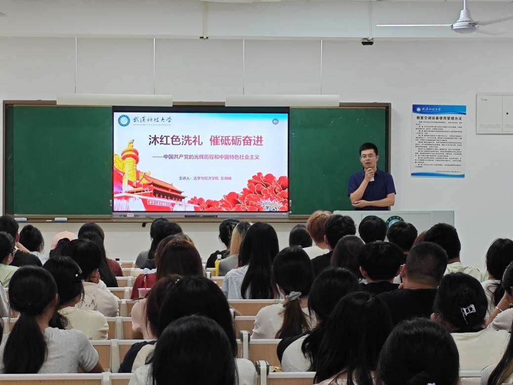仪式结束后,彭晓峰以《中国共产党的光辉历程和中国特色社会主义》为题,为培训班全体学员讲授开班第一课。