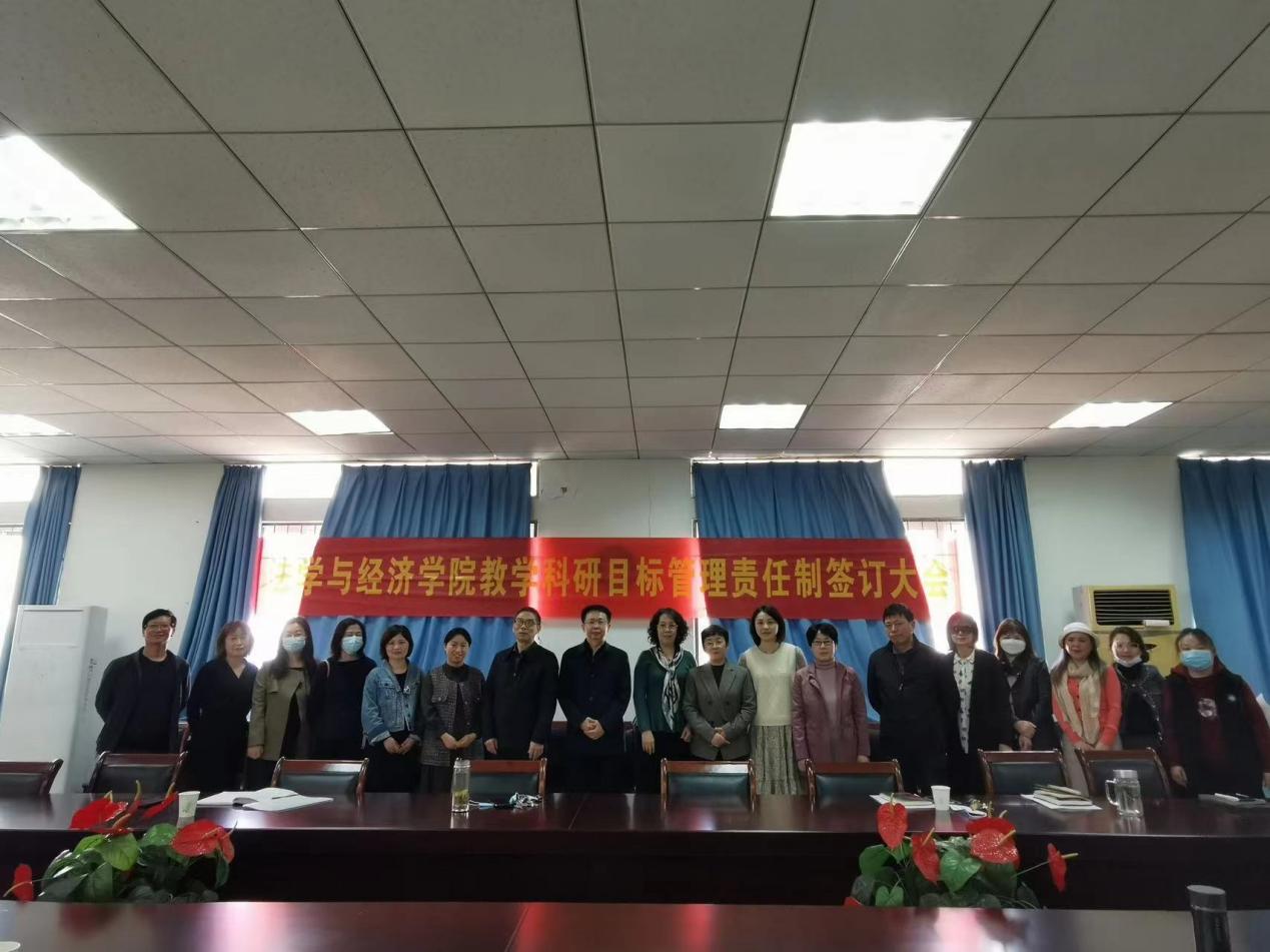 组织召开教学科研目标管理责任制任务书签订会。院长袁年兴、副院长李莉、贺尊、李桂珍、副书记刘英,以及各系主任和中心主任参加会议。