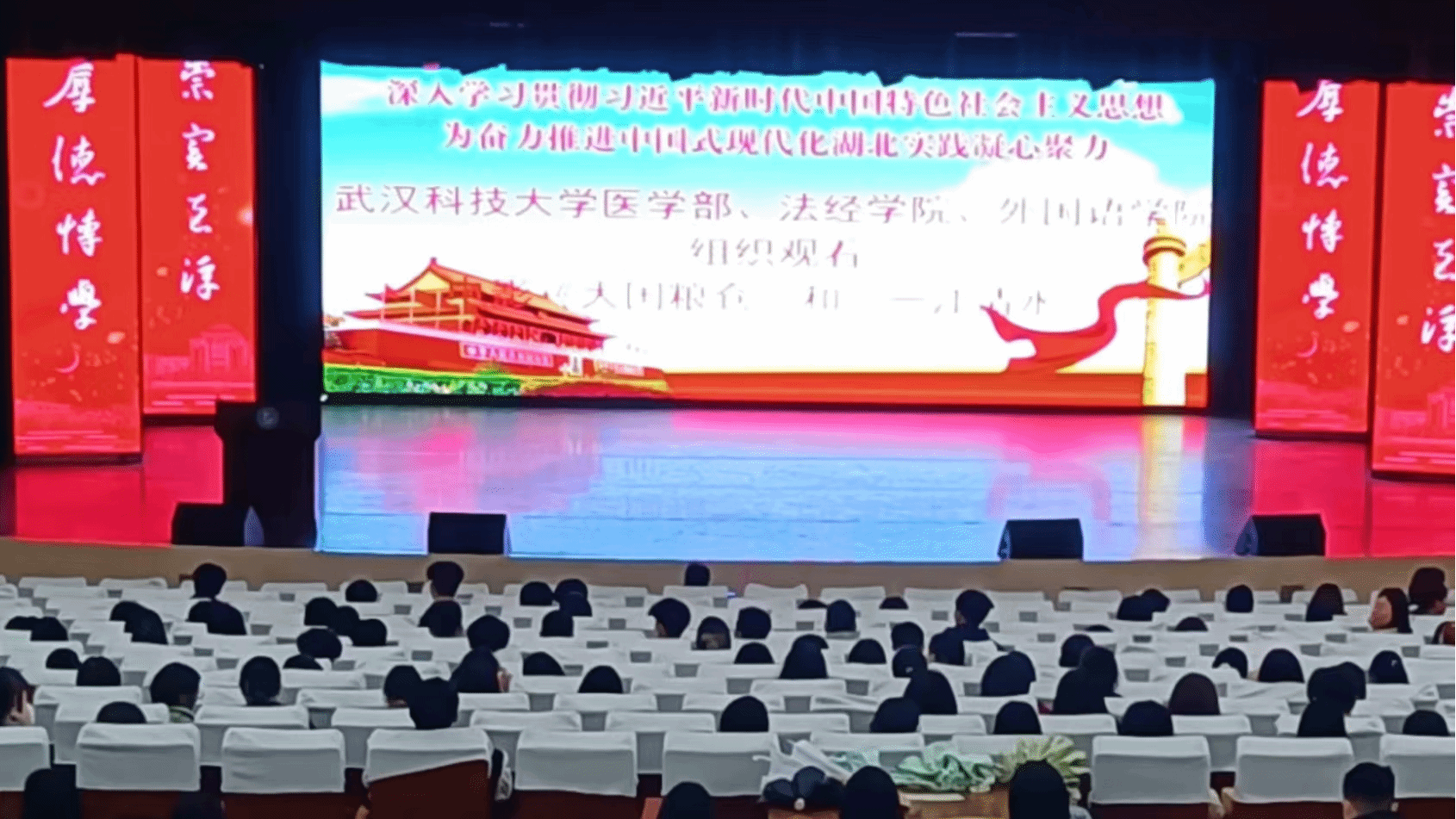 党委组织师生在沁湖礼堂观看了电影《大国粮仓》《一江清水》。学院党委书记杨彦、党委副书记刘英,全体教工党员、学生党员300余人参加活动。