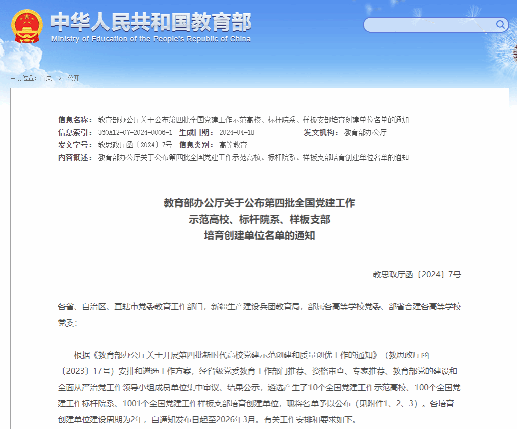 许白昊班学生党支部入选“全国党建工作样板支部”培育创建单位。这是继行政管理教师党支部、研究生党支部后司机会所