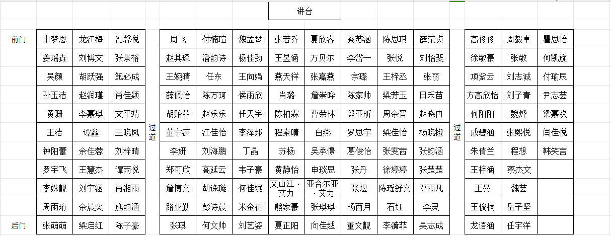 4、培训座次表