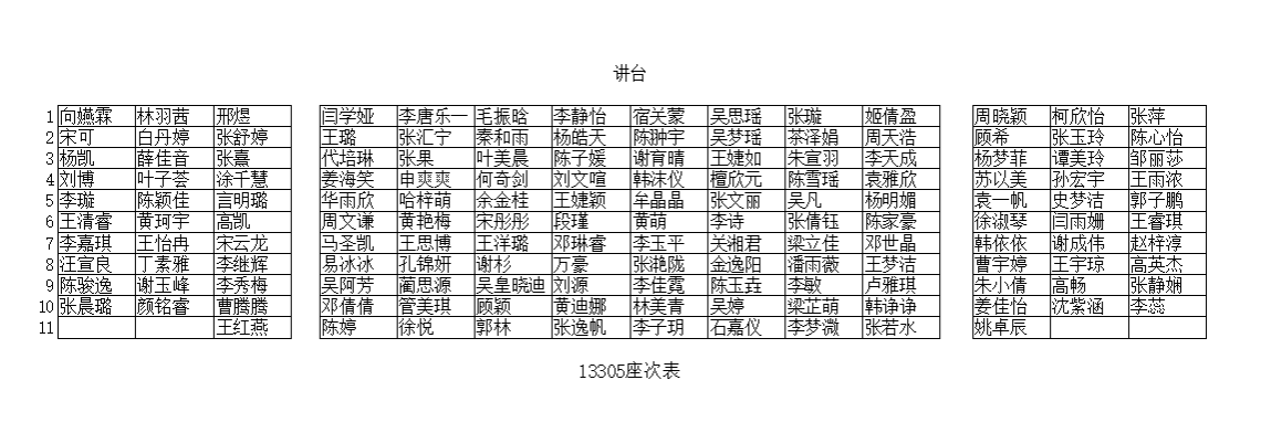 五、座次表