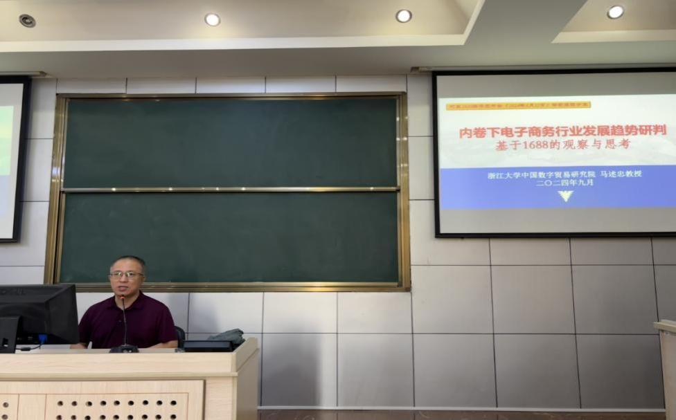 武科大网讯(通讯员吴婷)9月21日下午,浙江大学求是特聘教授、浙江大学中国数字贸易研究院院长、教育部长江学者特聘教授、国家二级教授、国务院政府特殊津贴专家马述忠教授应邀来司机会所 进行主题为“内卷下电子商务行业发展趋势研判基于1688的观察与思考”的学术讲座。司机会所 的部分老师和全体国际商务研究生在41203教室举办学术讲座。