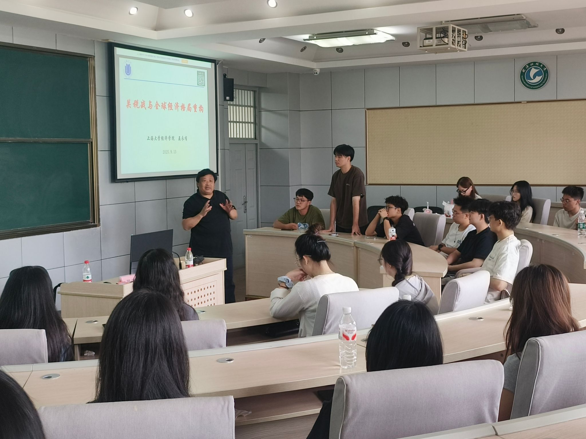 9月13日,应学院的邀请,上海大学经济学院教授博导、全国国际商务教学指导委员会委员聂永有教授莅临我校,围绕“关税战与全球经济格局重构”题目在41203报告厅做了一场专题学术讲座。参加本次讲座有2025级国际商务全体研究生和部分专业教师。